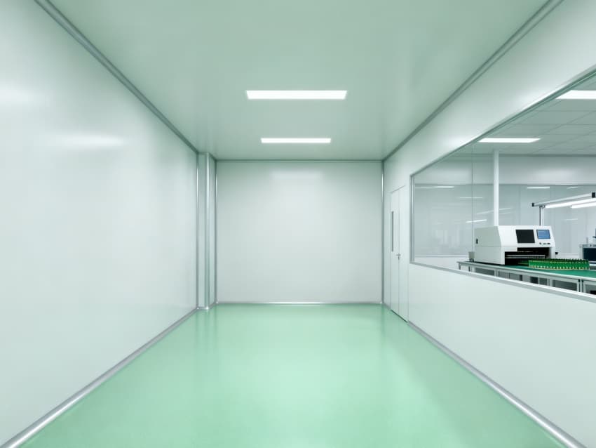 設計在環境防護上針對性突出:地面采用淺綠色防靜電環氧材質,表面電阻值控制在10^6-10^9Ω,有效規避靜電對電子零件的損傷;四周白色防塵墻壁經啞光處理,減少光線反射干擾,配合頂部高效空氣過濾器(HEPA),可穩定維持千級潔凈度,隔絕粉塵、微粒對精密組裝的影響。?