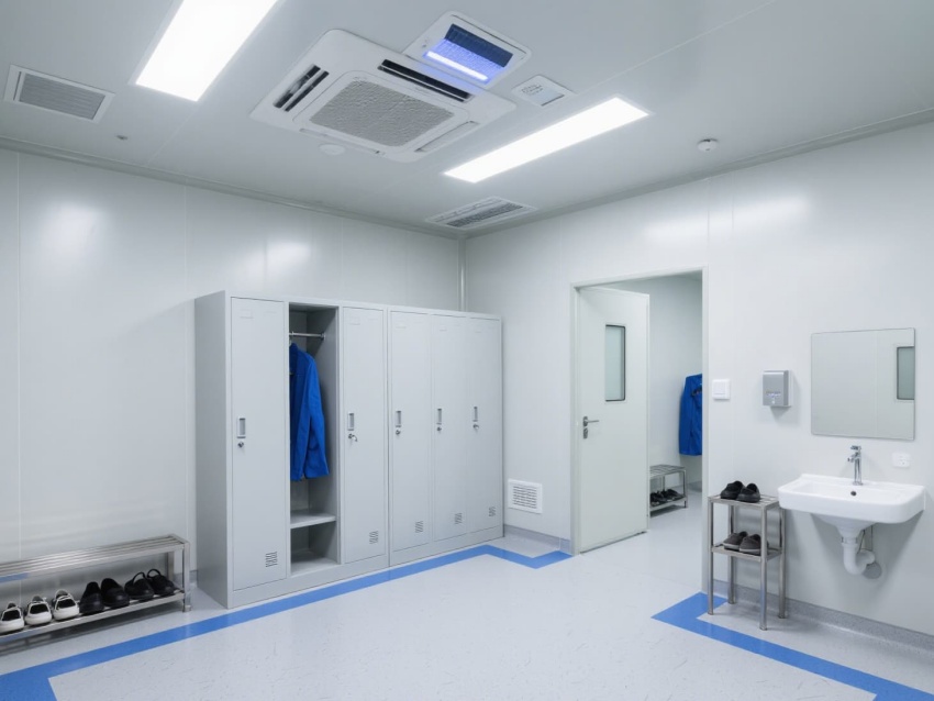 頂部高效過濾器與定向氣流系統維持每小時12-15次空氣置換,確保潔凈度達標。墻面嵌入式消毒裝置與紫外燈系統,可實現每日全方位消殺。實驗區配備負壓通風柜與生物安全柜,臺面采用耐腐蝕環氧樹脂材質,適配PCR反應的精密操作。