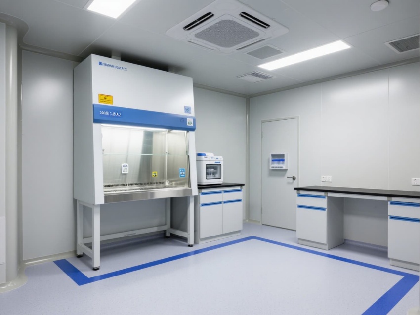 空間設計兼顧功能性與安全性,雙層鋼化玻璃觀察窗與互鎖式潔凈門,既保障操作可視性,又防止氣溶膠擴散,為基因檢測提供精準、安全的實驗環境。