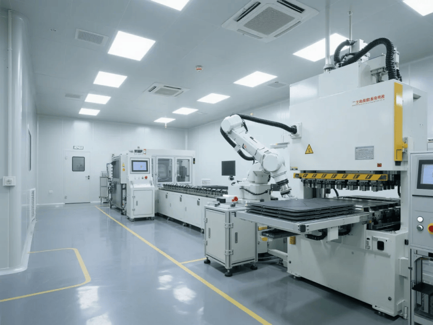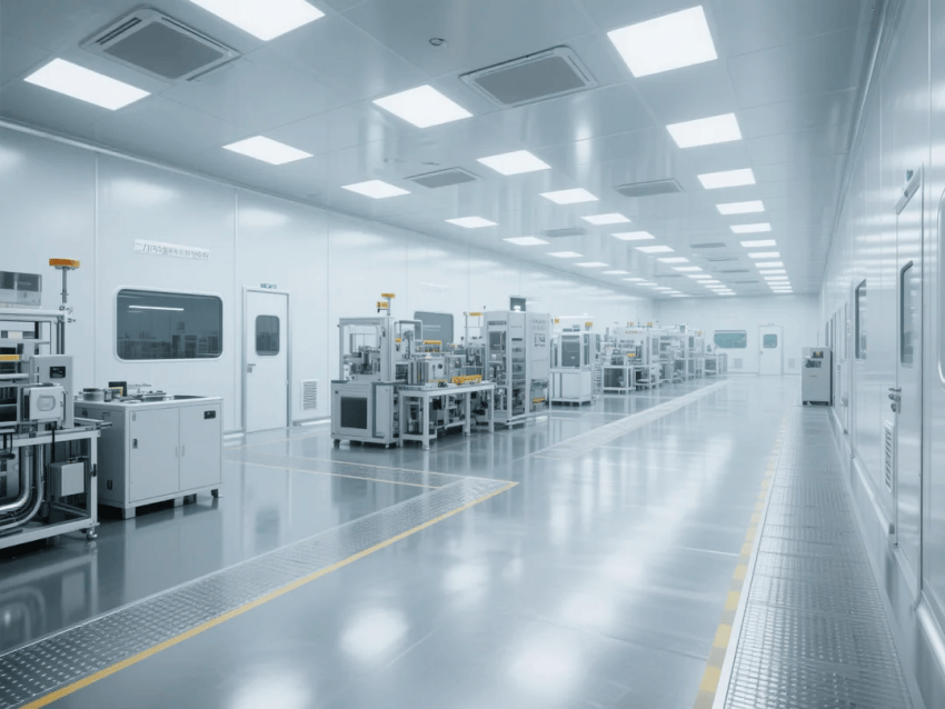 智能化配置:集成環(huán)境監(jiān)測與設(shè)備聯(lián)動系統(tǒng),白色彩鋼板墻面嵌裝LED智能看板,實時顯示生產(chǎn)數(shù)據(jù)與潔凈參數(shù)。機(jī)械臂工作站配備藍(lán)光定位系統(tǒng),與金屬灰地坪形成科技視覺呼應(yīng)。