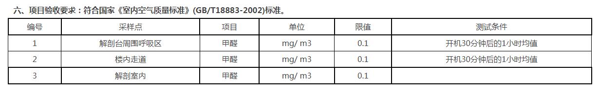 六、項目驗收要求:符合國家《室內空氣質量標準》(GB/T18883-2002)標準。