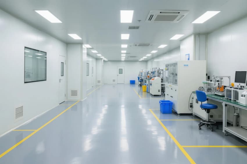 智能控制系統(tǒng)集成環(huán)境監(jiān)測(溫濕度/潔凈度/壓差)、設(shè)備聯(lián)動和能源管理三大模塊,通過墻裝LED智能看板實現(xiàn)數(shù)據(jù)可視化。照明系統(tǒng)采用600x1200mm潔凈平板燈,照度維持800Lux±10%,重點工位增設(shè)局部黃光照明。工程整體通過模塊化設(shè)計、智能化控制和標準化施工,實現(xiàn)電子光伏廠房在潔凈度、能效比和生產(chǎn)效率的最優(yōu)平衡。