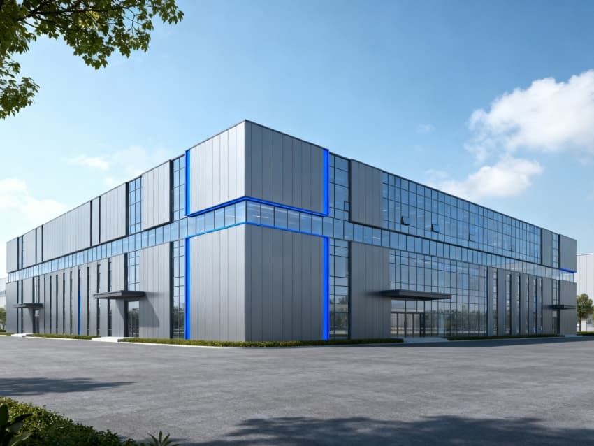 本項目為合肥半導體產業園核心標準廠房,聚焦半導體產業高潔凈、高穩定、高靈活的生產需求,打造適配芯片制造及封裝測試環節的專業化空間。外立面采用密封式節能幕墻設計,搭配防塵金屬扣板,有效隔絕外部粉塵與溫濕度干擾,滿足半導體生產對外部環境的嚴苛要求。?