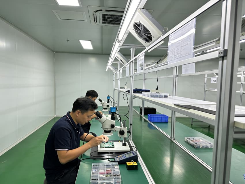 電路板制造車間內(nèi)部采用綠色地面與白色墻壁的簡約統(tǒng)一風(fēng)格,精準(zhǔn)適配電路板生產(chǎn)對(duì)防靜電、高潔凈的嚴(yán)苛要求。綠色地面選用防靜電抗菌環(huán)氧自流平材質(zhì),經(jīng)基層強(qiáng)化、精準(zhǔn)找平、防靜電涂層等多道工序施工,表面平整無縫,兼具強(qiáng)殺菌特性,可耐受高頻次清潔與消毒作業(yè),杜絕微生物滋生,同時(shí)防靜電性能穩(wěn)定,有效規(guī)避靜電對(duì)電子元件的損傷。