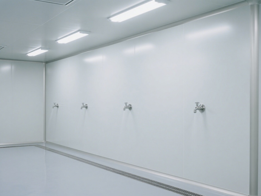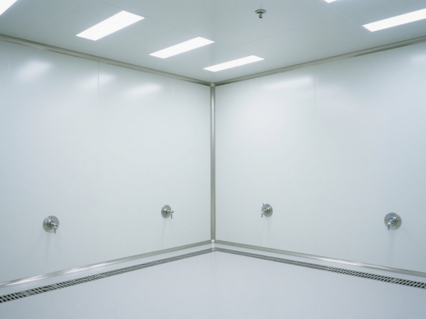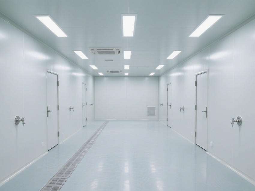 效果圖從不同視角展現空間優勢:正面視角呈現開闊的通透格局,無設備干擾更顯規整;角落特寫聚焦圓弧墻角與無縫拼接工藝,規避積塵死角;側視角度凸顯層流送風系統與高效過濾裝置,直觀傳遞潔凈技術核心;局部細節圖則清晰展示地面防滑紋理、墻面抗污涂層等實用設計。?