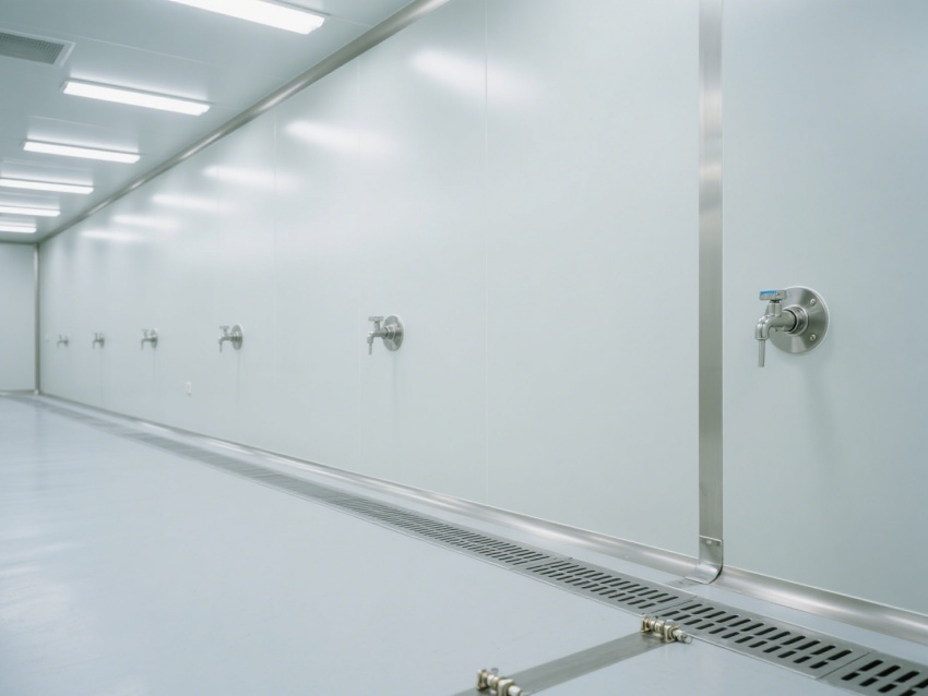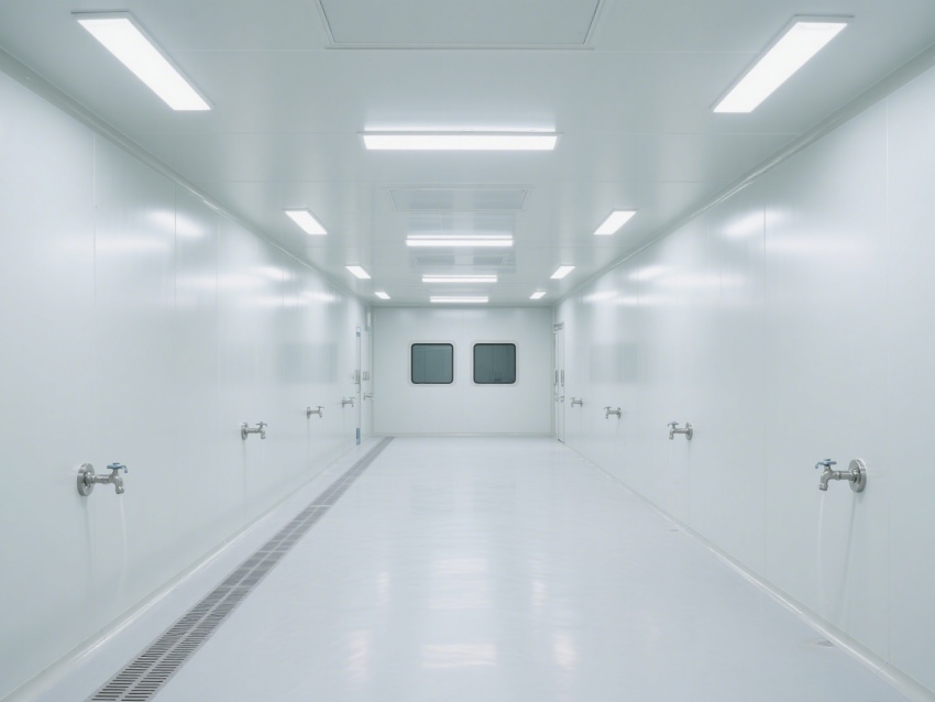 本次呈現的無塵無菌車間效果圖,整體采用極簡工業風設計,墻面、地面、頂面均選用一體化抑菌潔凈板材,色調以醫用級純白為主,搭配淺灰金屬收邊,視覺上凸顯整潔通透感。?