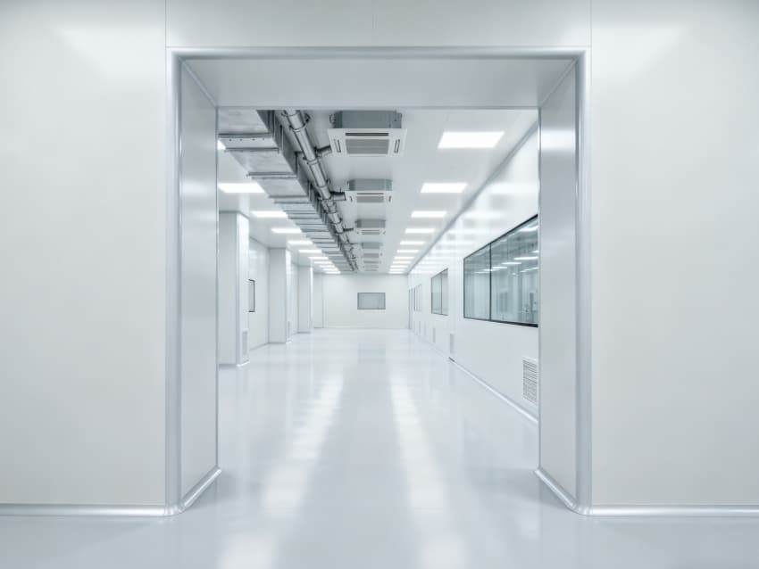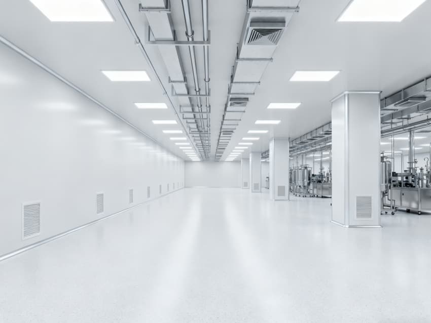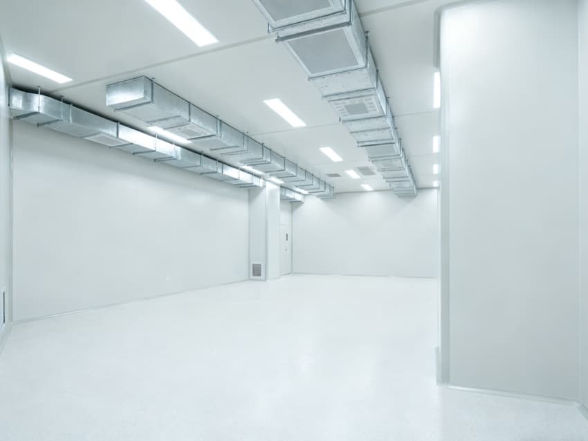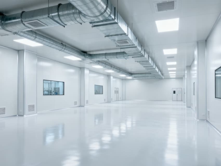 內(nèi)部6個核心生產(chǎn)車間均為無設備空曠布局,按萬級潔凈標準打造:地面鋪設無縫環(huán)氧自流平,墻面采用食品級不銹鋼墻板,陰陽角做圓弧處理,杜絕積塵死角;空間柱網(wǎng)間距均勻,預留充足設備安裝點位與運維通道,滿足后續(xù)柔性生產(chǎn)需求;頂部吊頂整合新風系統(tǒng)與防眩光照明模塊,風口布局對稱規(guī)整,進一步強化空間的空曠感與規(guī)整性,為生物制藥生產(chǎn)的潔凈性、安全性與可擴展性奠定堅實基礎。