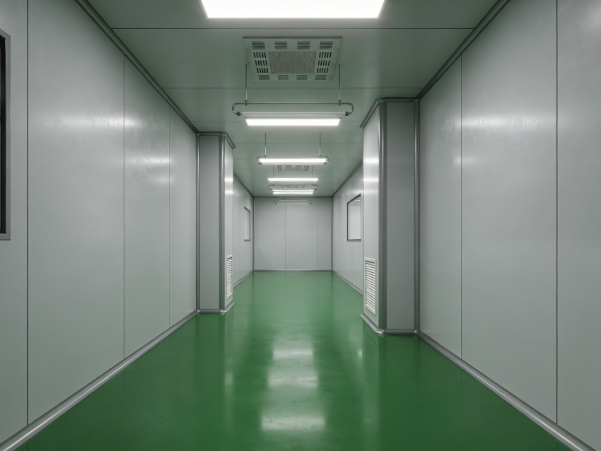 內部生產車間均以綠色抗菌潔凈地坪搭配灰色工業級無縫墻面,形成鮮明且適配行業的視覺基調。綠色地面選用食品級抗菌環氧材質,具備強耐磨、抗酸堿腐蝕及易消殺特性,可耐受發酵液、清潔劑等殘留清理,同時助力緩解操作人員視覺疲勞;灰色墻面采用抗菌涂層無縫拼接,搭配圓弧墻角設計,徹底消除清潔死角,減少微生物附著滋生。
