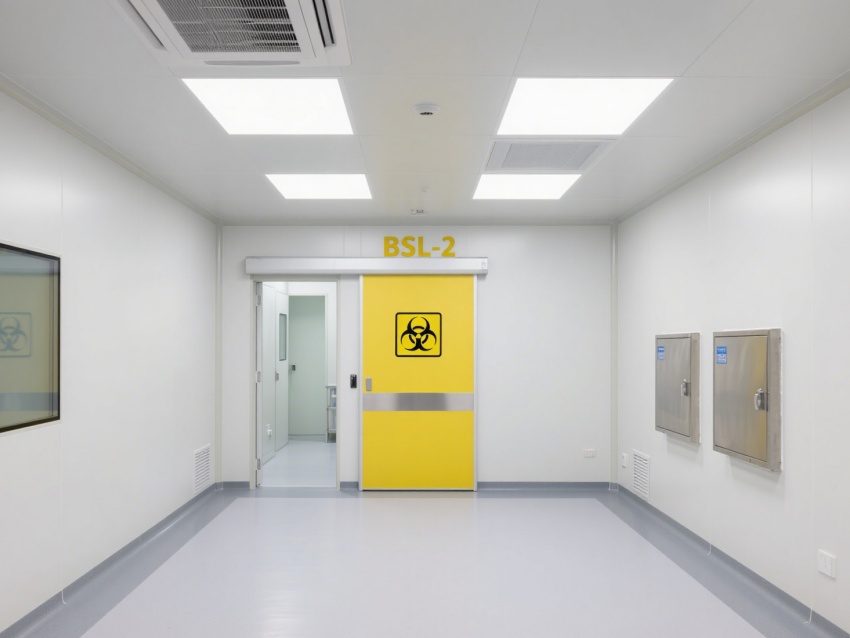 該病原生物檢測實驗室是符合BSL-2級生物安全標準的專業(yè)檢測場所。實驗室采用嚴格的分區(qū)設計,以黃色生物危害標識明確核心檢測區(qū)域,配備負壓系統(tǒng)(負壓15Pa),通過高效空氣過濾與氣流控制,防止病原微生物擴散。