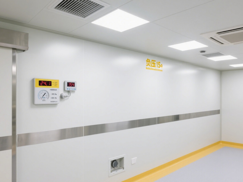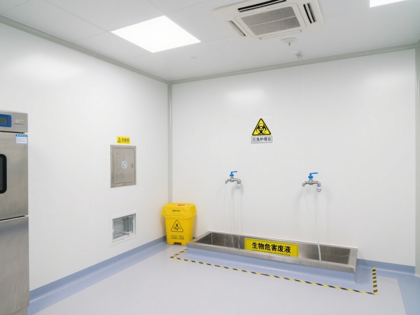 內部設施專業(yè)且完善,生物安全柜為實驗操作提供無菌防護;各類氣路、水路接口布局規(guī)范,滿足檢測過程的資源供應;配備應急沖眼設施與生物危害廢液處理區(qū),保障實驗安全。空間設計注重潔凈與防護,墻面、地面為無縫抗菌材質,便于消毒滅菌,黃色警示線清晰劃分功能區(qū)域,各類監(jiān)控儀表實時顯示溫濕度、壓差等關鍵參數,確保實驗環(huán)境穩(wěn)定可控。