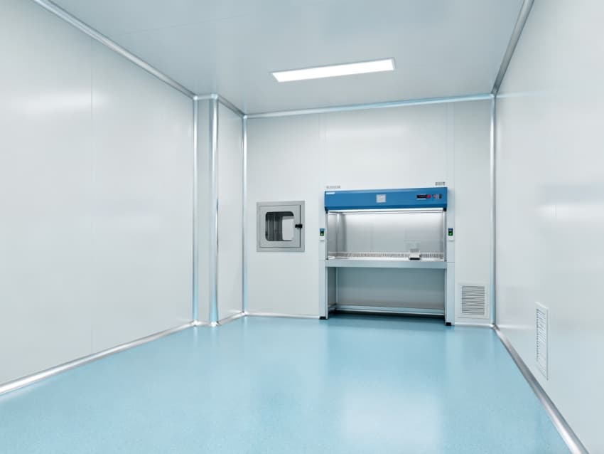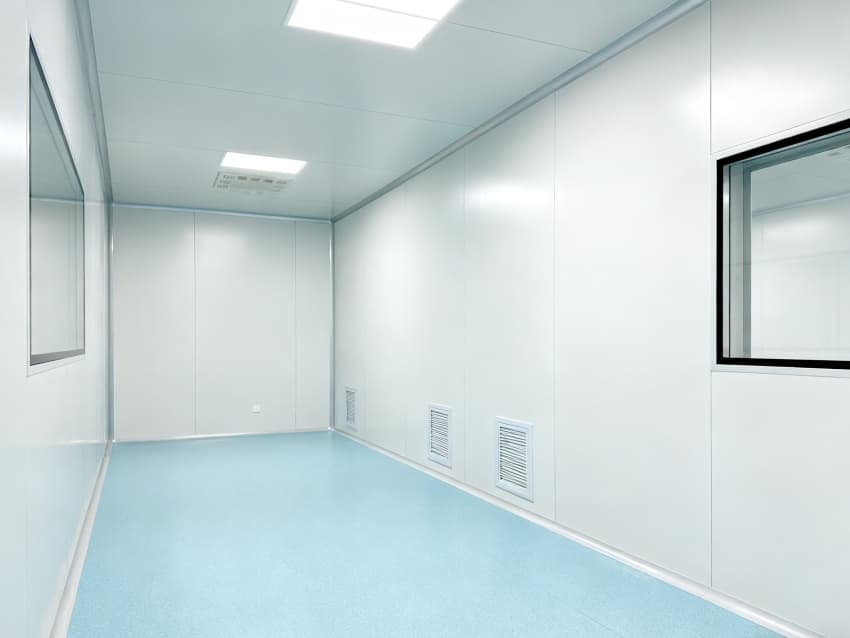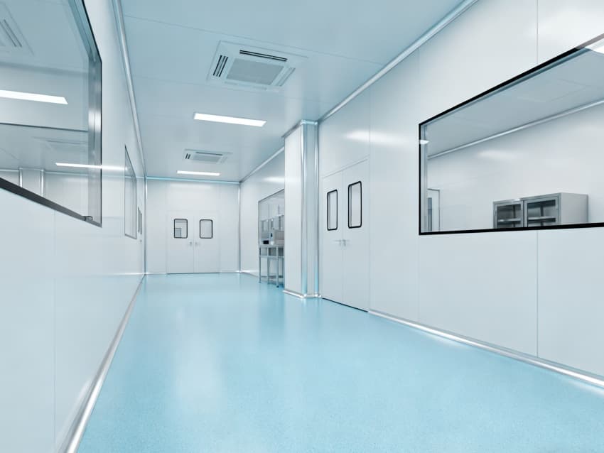 在環境控制層面,本設計彰顯卓越優勢:地面選用淺藍色防滑防腐蝕環氧材料,不僅具備優異的抗藥劑侵蝕性能,而且清潔消毒極為便捷;四周白色抗菌墻面采用圓弧轉角工藝,有效規避粉塵積聚風險,搭配全吊頂潔凈送風系統,可將潔凈度穩定維持在萬級標準,精準契合藥劑生產對微環境的嚴苛需求。?