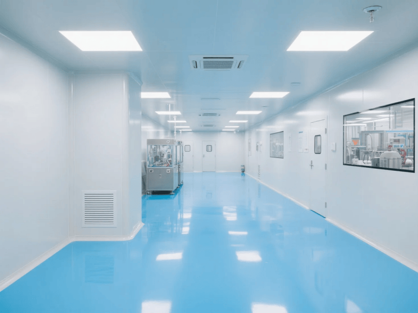 本工程嚴格遵循ISO14644-1Class7及GMP醫療器械生產規范,打造高標準的生物醫療器械制造環境。車間采用醫療級白色抗菌彩鋼板與淺藍防靜電環氧地坪的潔凈配色方案,營造安全、精準的生產空間。