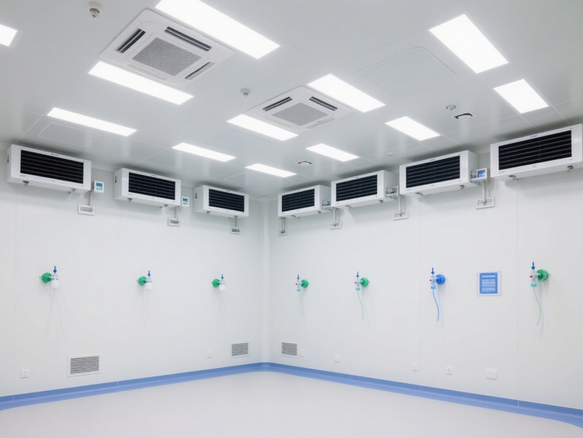 空氣凈化系統配備高效過濾器,通過精準氣流控制維持高潔凈度,為醫療操作提供無菌環境??臻g布局科學,設置更衣區(配備不銹鋼潔凈柜),確保人員進入前的潔凈處理;各類醫療氣體接口(如氧氣、壓縮空氣)分區明確、標識清晰,滿足診療過程的氣體供應需求。